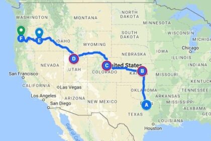 Below is the map of my journey from Texas to Oregon over a 5 day drive. I also included the city stops, driving distances and travel times for each leg of my trip underneath the map.
