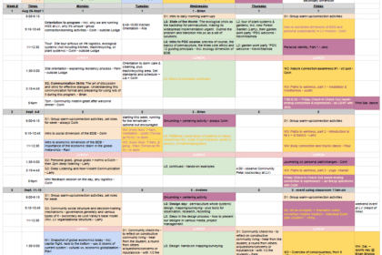 Mondays’ classes are typically devoted to Social and Economic classes, while Fridays classes focus on Worldview and Personal – which include topics like ceremonies, Tai Chi, journaling and stages of consciousness.