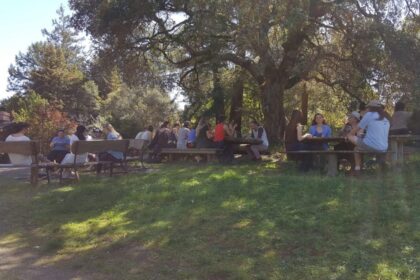 Here’s a picture of the outdoor classroom, where the permaculture students just finished one of their wild-crafting classes.