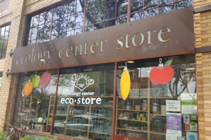 However, there were some volunteers working in the food forest in the backyard replacing the irrigation system. (See all the EcoHouse home and garden features here!) They invited me in and we talked about my travels and next stops, and they recommended I go to the Ecology Center’s Eco Store in downtown Berkeley.