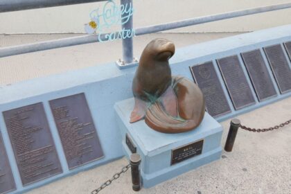This seal statue sits next to about a dozen plaques recognizing many businesses and government organizations that have been a part of Seal Beach’s history, as well as serves as a memorial for certain individuals.