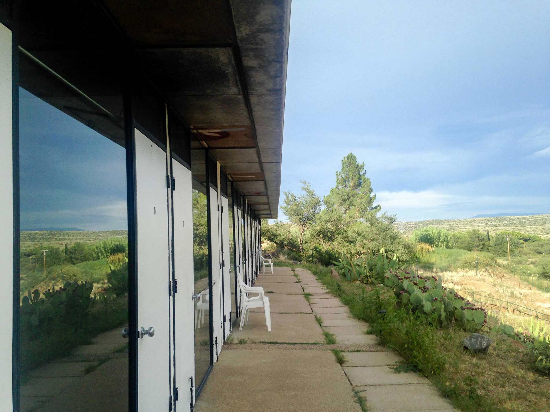 The apprentice cabins are down by the seasonal creek, which is why the trees are greener in this part of the desert valley.