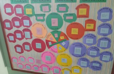 Here’s a view of the living room and classroom, with lighter sheets draped across the furniture – which help spot mosquitoes that are inside.