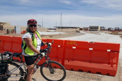 We biked against the wind about 4 miles to the Mexican border, where we cut through the Columbus New Mexico Port of Entry construction area that was expanding the border buffer zone further back into the state. On our ride in, we also came across a cross memorial in honor of those who died while trying to cross into the US.