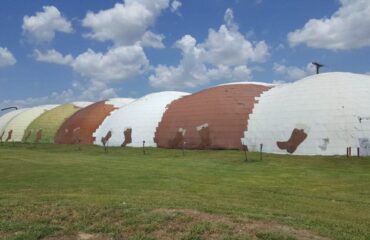 “Tall Solo, Big Mama Baby, and Little Mama are three sculptures by Texas artist Sharon Engelstein that make up the family group titled Crullers. Inspired by the many possible definitions of family, the creature-forms hint at the familiar while inviting interpretation and conversation. One viewer might see an animal, while another might see a spacecraft, or scoops of ice cream or a rock formation. The artist used steel armature, milled foam and pigmented glass fiber reinforced concrete to create these whimsical shapes. Taking inspiration from beloved animals, specifically elephants and hippopotamuses, the artist crafted form and texture to evoke the sense that these sculptures are creatures. Big Mama Baby and Little Mama are nestled together within soft grasses across from the new Central Library, patiently waiting for Tall Solo, who has “wandered away” to 3rd Street and West Avenue.” — Economic Development Department Webpage