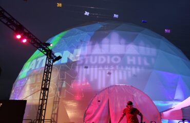 I rounded the corner of the natural privacy brush wall near the AGBD Building, and came upon an open courtyard with various tiny buildings, geodesic domes, unique artistic sculptures and rustic metal tools spread throughout the space!