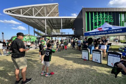 I was told the participants really enjoyed the game and found it challenging, but not too difficult. My team also told me they couldn’t have multiple players at once for an unforeseen reason. Apparently, the TDS and Austin FC partnership for landfill diversion resulting in many of their concession items being compostable. This meant most of the players’ spins landed on compostabale waste, resulting in most players aiming and shooting for the only compost waste cart – so only one player could go at a time! Based on the stadium’s concession diversion, the recycling cart was the second most popular target. While the landfill cart was hardly ever the waste target goal.