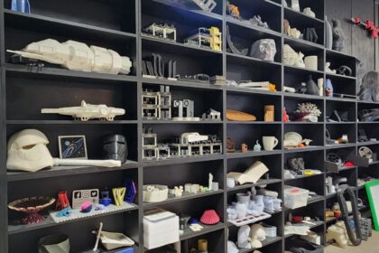 Walking into the space, I was immediately struck by how re:3D has transformed the building into a hub of innovation. Massive 3D printers lined the walls, producing everything from artistic sculptures and signage to functional construction components. The team even showed off some of their pop-culture creations (yes, there were Star Wars-themed prints — and they were incredible).