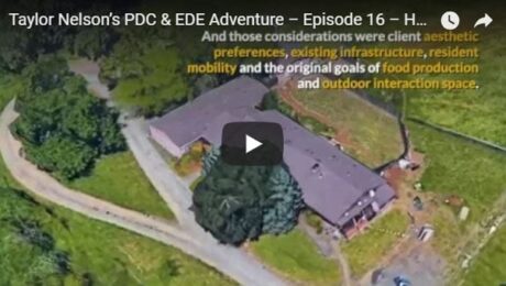 Wednesday started with presentations of our initial design concepts for our PDC projects. Bri and I went to Bethany’s the day before to make the initial design and overlay concept layers, which was a hand-drawn scaled sketch on white butcher paper and colored pencils, and Bethany taped transparency sheets to make large overlay mats which we drew the design layers on. These layers includes wind direction, summer and winter sun patterns, water flow, levels of elevation, human and animal foot traffic, as well as other considerations. And for our design, those considerations were client aesthetic preferences, existing infrastructure, resident mobility and the original goals of food production and outdoor interaction space.