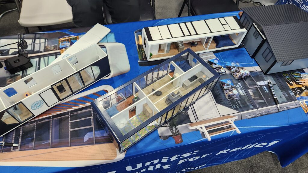 The other major highlight for me was the modular and container-style housing vendors. These weren’t your typical pop-up shelters, they were thoughtfully designed, durable, and adaptable units that could serve multiple purposes: temporary housing for displaced families, workforce lodging for recovery teams, or even mobile command centers.