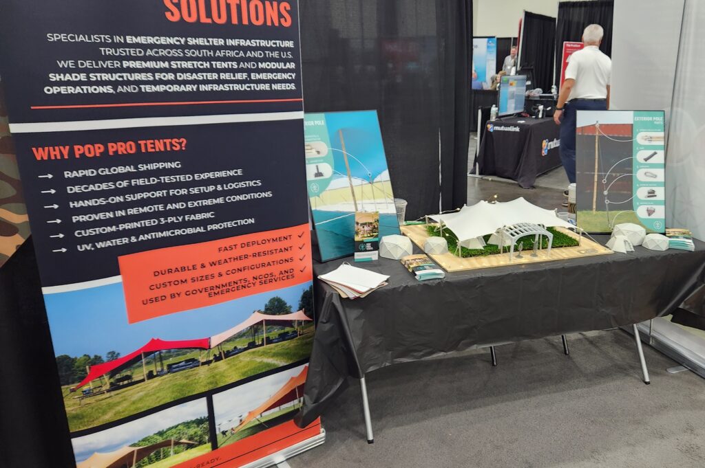 There’s something motivating about walking a trade show floor filled with people who aren’t just talking about resilience, they’re building it. From emergency communications systems to off-grid shelters, every booth represented a piece of the larger resilience puzzle. The diversity of solutions was striking: drones mapping disaster zones, flood mitigation technology, portable solar systems, storm-hardened housing, and climate data platforms all under one roof.