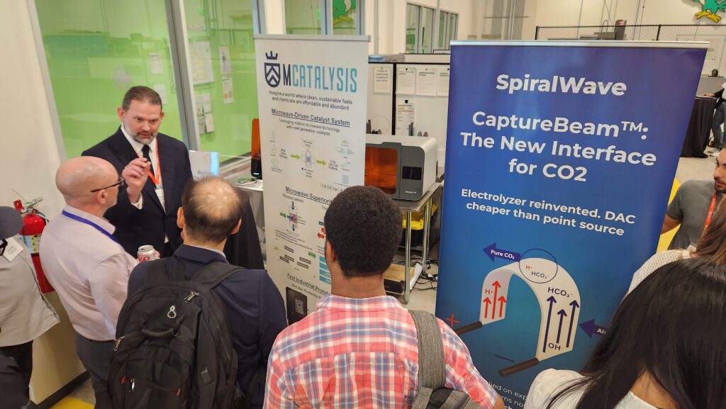 After the virtual sessions wrapped, I joined the Greentown Houston startup showcase in person. The atmosphere inside the incubator was invigorating with rows of prototypes, posters, and passionate founders demonstrating everything from advanced materials to robotics for energy applications.