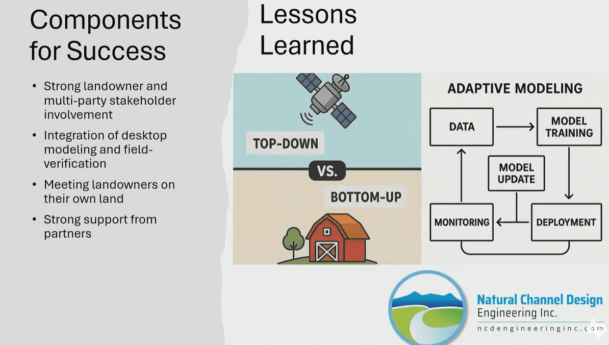 - Pair GIS, drones, remote sensing, and AI with rancher/landowner insight for better targeting and adoption (Delaware Basin work; landscape rehydration).
