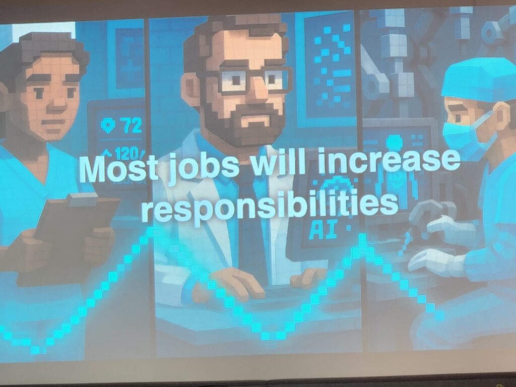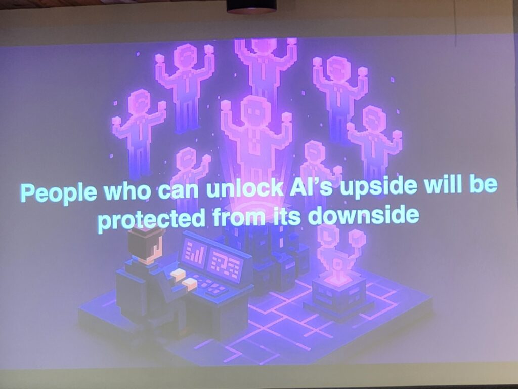He left the audience with a clear message: Those who learn to unlock AI’s potential will benefit from its upside and be protected from its downside. Understanding and embracing these tools, rather than resisting them, will be essential for navigating the future of work and society.